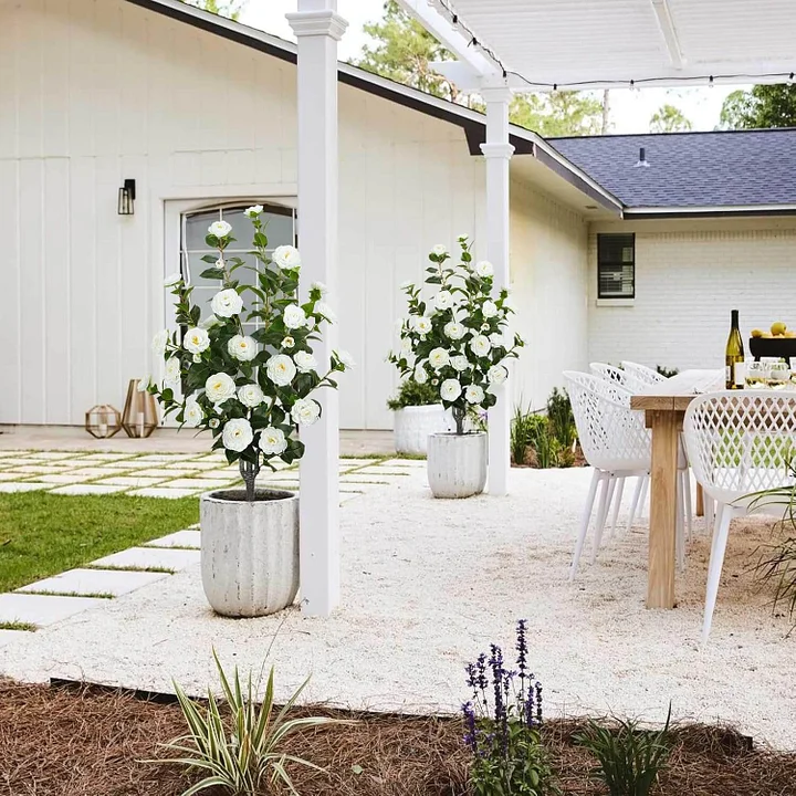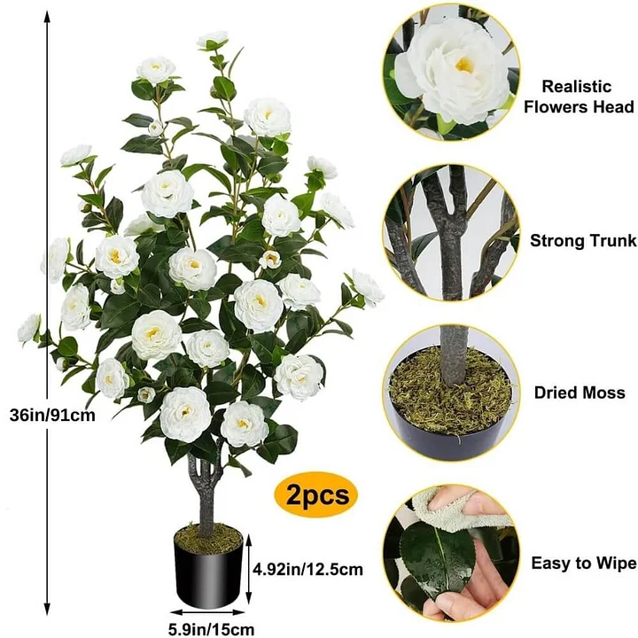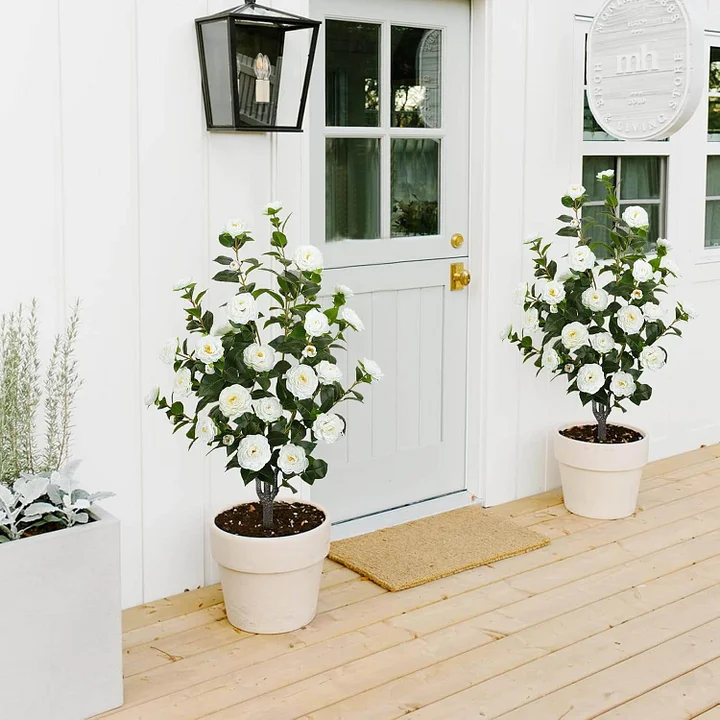 Enhance your space with artificial camellia trees featuring 32 blooming white flowers and dense green foliage. Their natural elegance creates a fresh and sophisticated atmosphere anywhere.